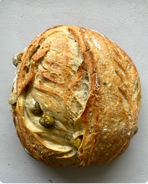 Contiene: Fermento de masa madre, sal, aceitunas, hiervas finas, limon en conserva.